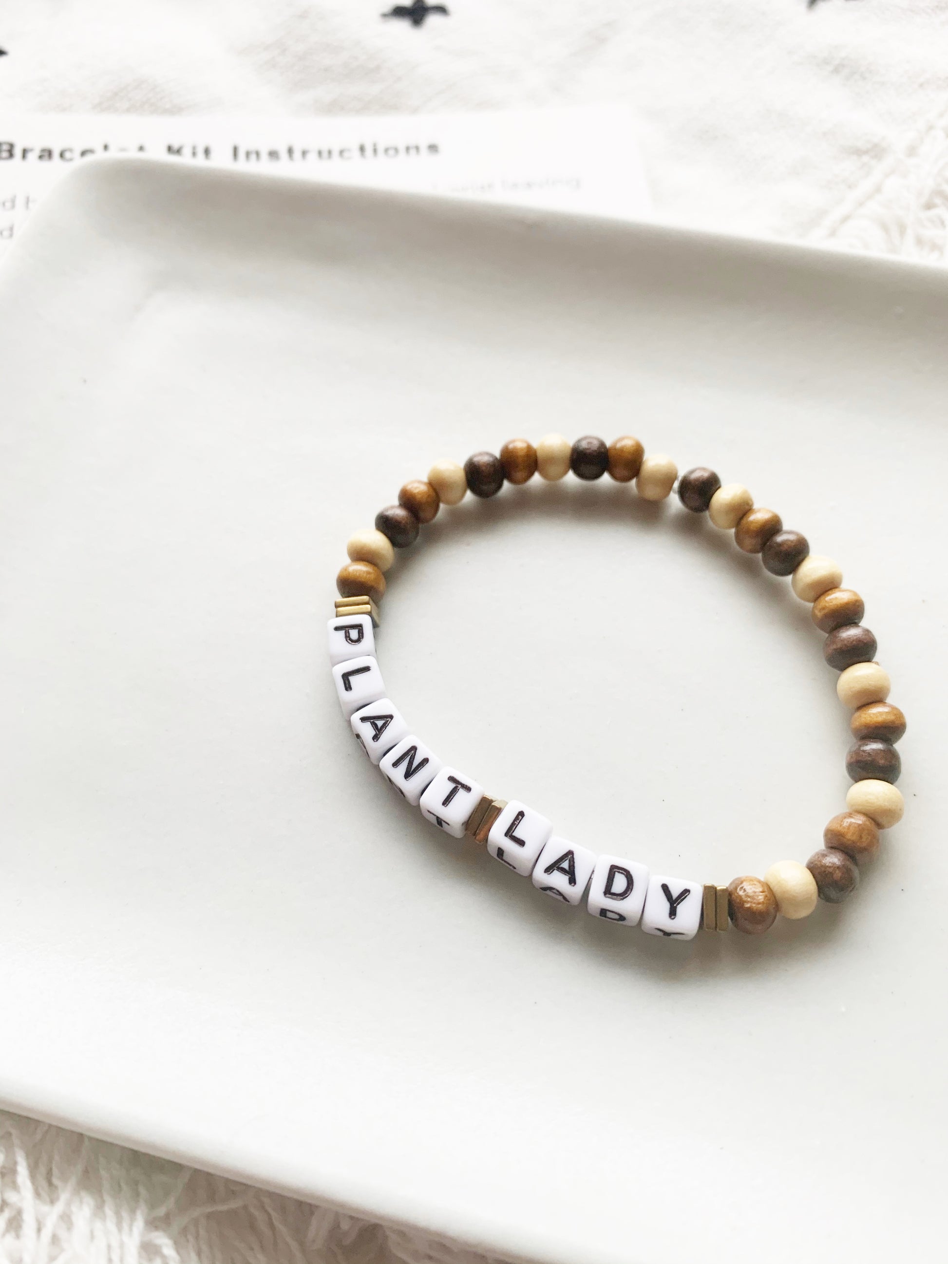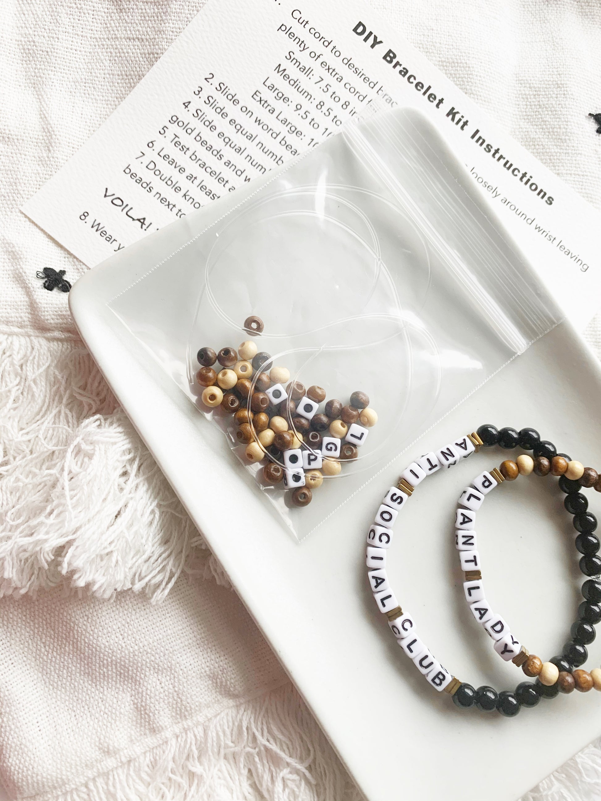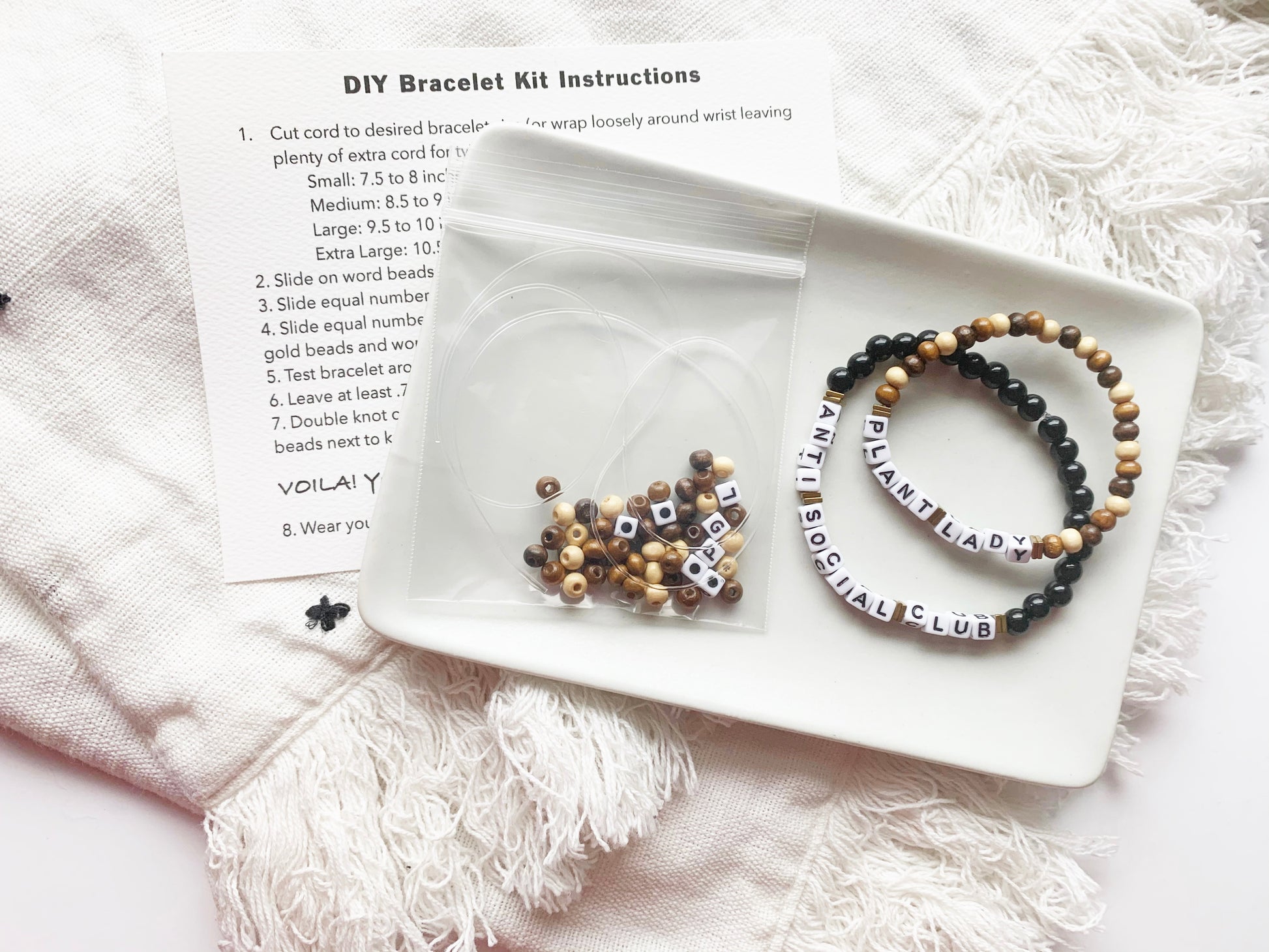 Each kit includes bracelet making instructions, stretchy cord, beads and YOUR own personalized word beads.