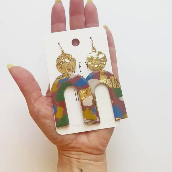 Material: Clay + hand poured resin + gold plated brass with nickel free ear hooks