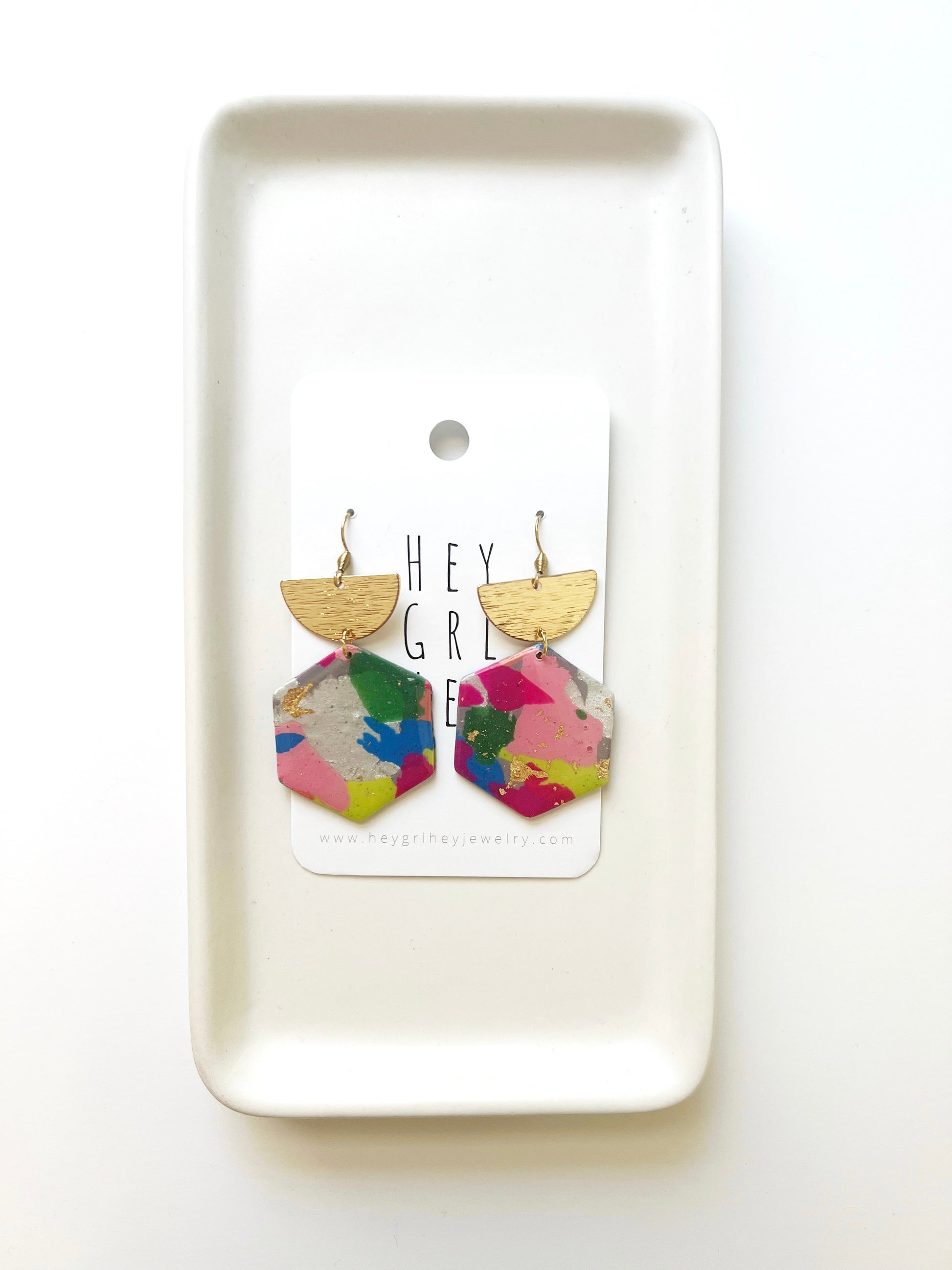 Material: Clay + hand poured resin + gold plated brass with nickel free ear hooks